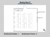 Additional chairs can be provided with advance notice, and are available in the closet on the northeast side of Room B.